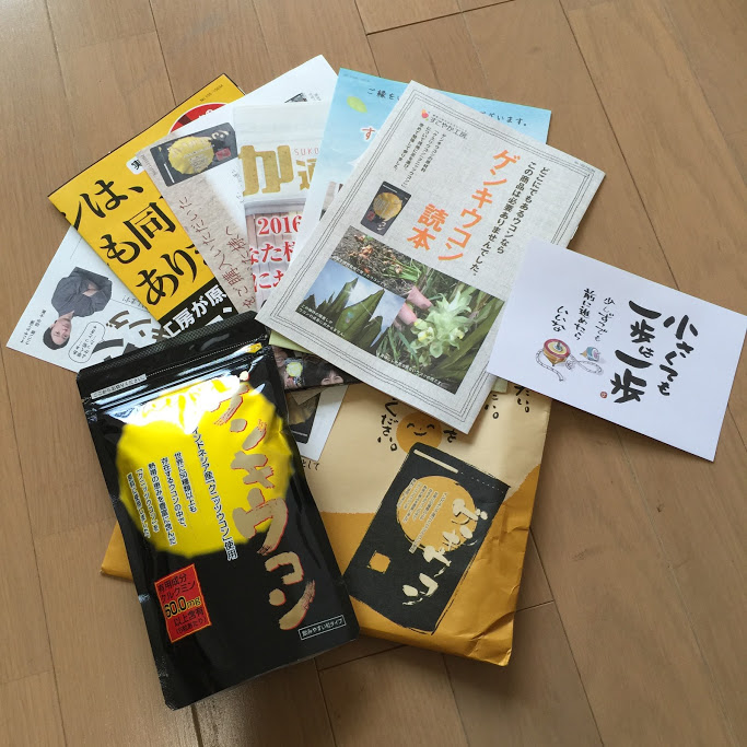 届いてみると、商品だけではなくチラシや冊子などが入っていました。それを一つ一つ読んでみると、このゲンキウコンがどれだけ優れたものなのか、というものを物語るものでした。